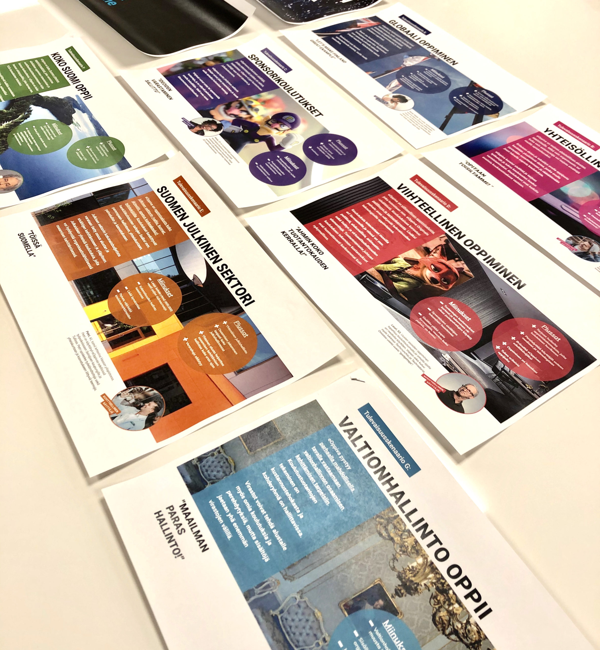 - Visualisoin eri skenaariot, siistin tekstit, tiivistin, muokkasin ja julkaisin Adoben pilvessä. Ah, niin helppoa nykyään tuutata Inkkarista asioita kaiken kansan nähtäväksi internettiin! Kyllä on työnkulku nykyään niin helppoa. Visualisointiin meni aikaa noin puoli päivää.