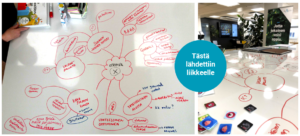 - Ideointipalaveri tiimin kesken. Aikaa kului pari tuntia, kahvia & teetä sitäkin enemmän, iloista huutoa, härdelliä, yleistä sekoilua ja pöytään piirretty mindmap, johon kiteytyi mahdollisia tulevaisuuden suuntia.