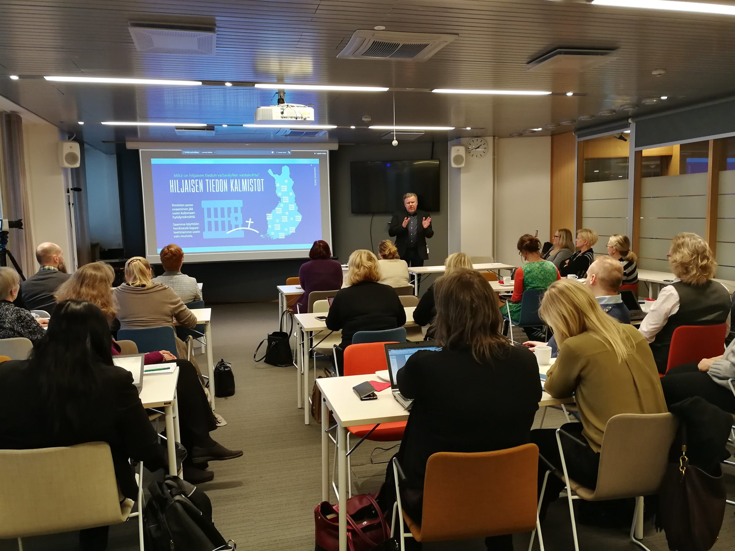 Jouluisat tuoksut johdattelivat 28.11.2017 kolmannen verkostotapaamisen osallistujat Valtiokonttorille eOppivalle sopivasti Kallio-neuvotteluhuoneeseen. Mukana oli tuttuun tapaan osallistujia myös Skypen kautta. Yhteensä osallistujia oli jälleen reilu viisikymmentä.